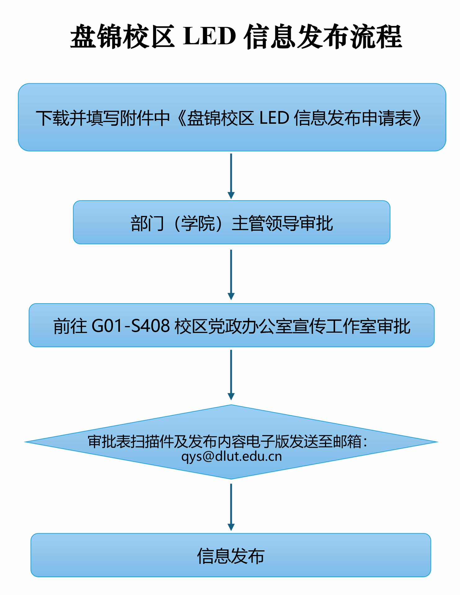 4.审批通过后的表格扫描件及发布内容电子版发至qys@dlut.edu.cn ;