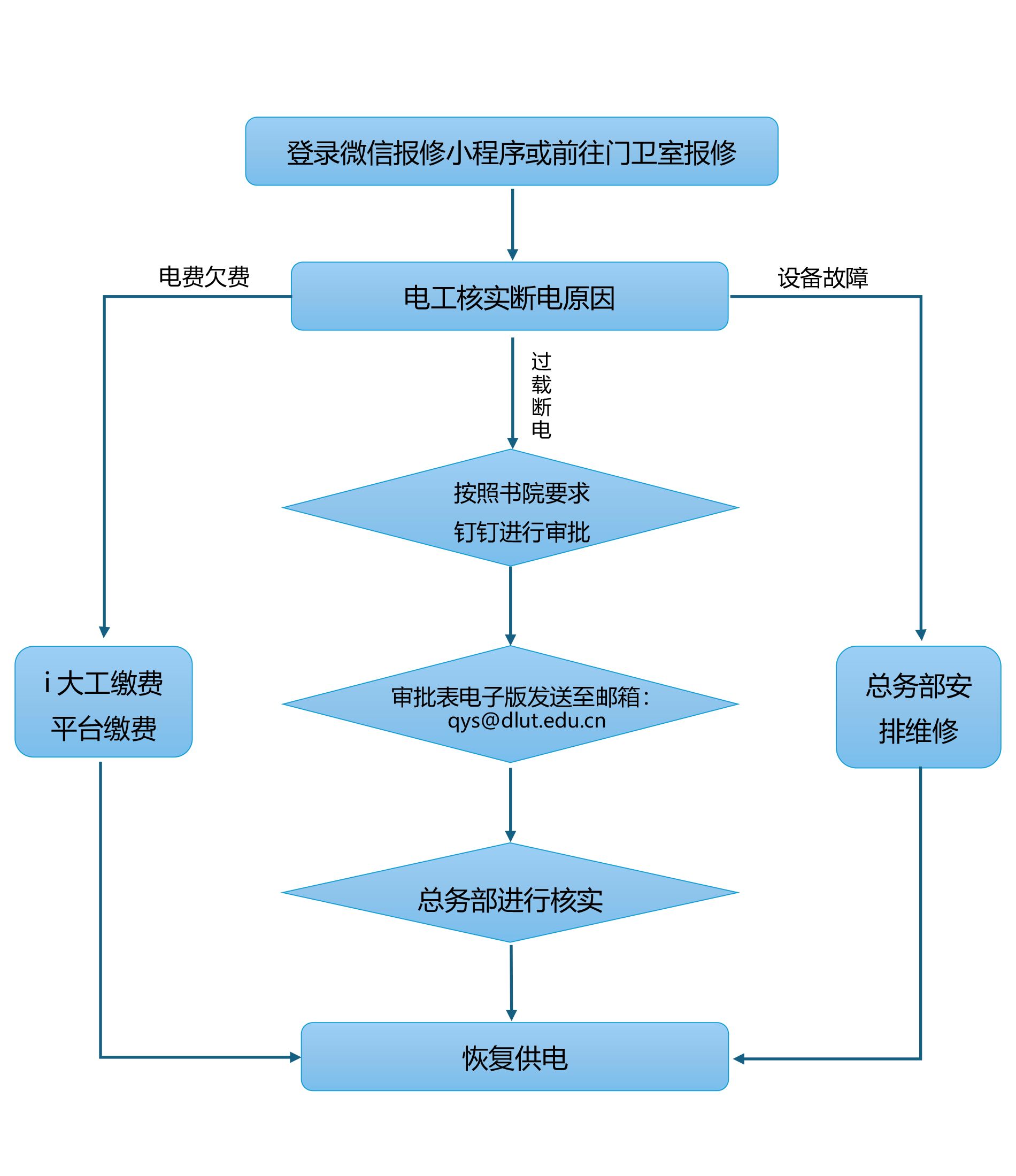 1. 如发生用电故障,请按照以下流程进行报修处理: